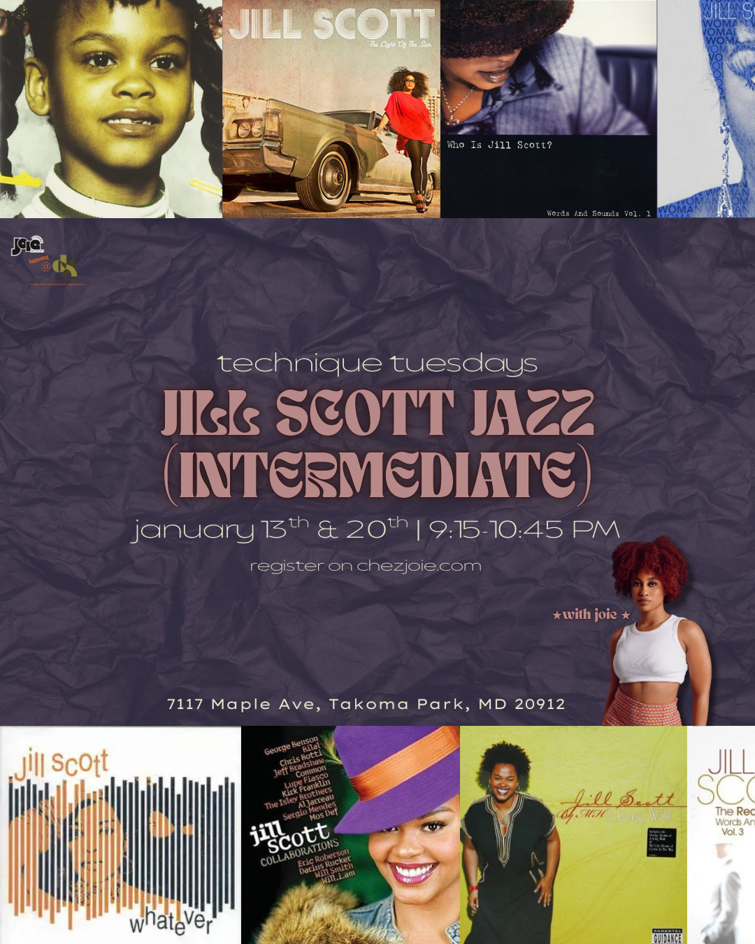 technical jazz classes for dancers of all levels set to Jill Scott's extensive (and exquisite) discography ❤︎